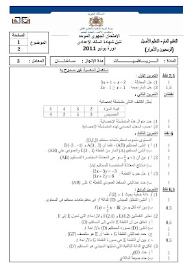 تصحيح الإمتحان الجهوي الموحد لنيل شهادة السلك الإعدادي - سوس ماسة درعة - دورة يونيو 2011
